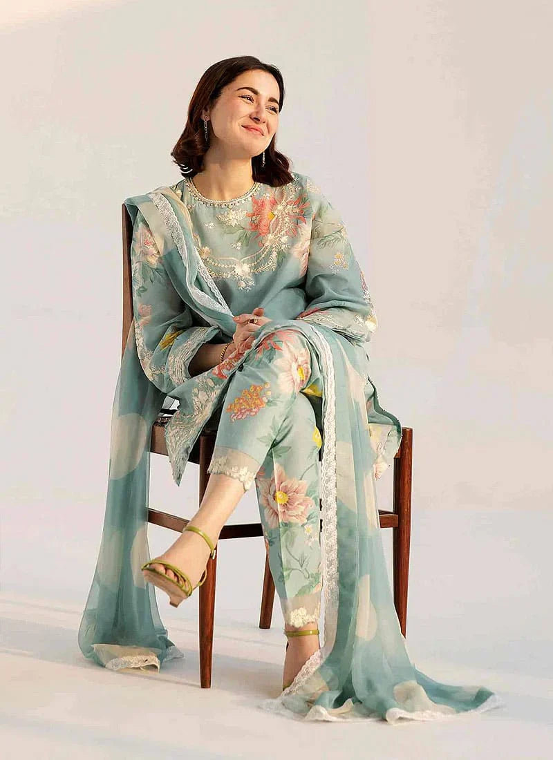 Digital Printed Lawn Shirt with Embroidered Neck Patch