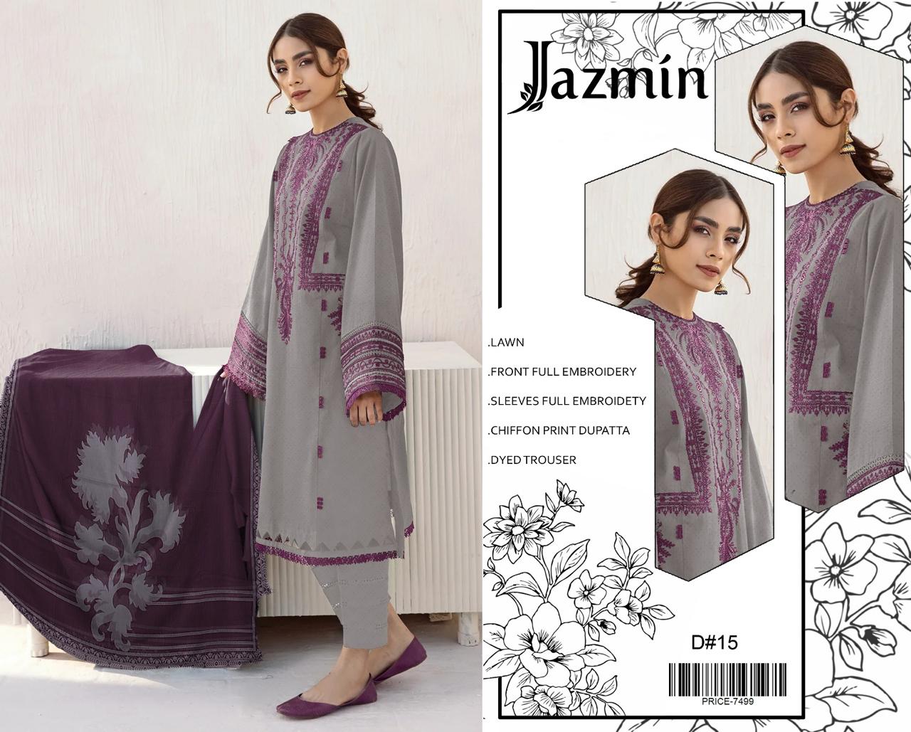 Lawn Front EmbroideredLawn Sleeves EmbroideredLawn Plain Dyed BackLawn Plain Dyed TrouserDigital Printed Chiffon Dupatta Disclaimer: Product Colour...